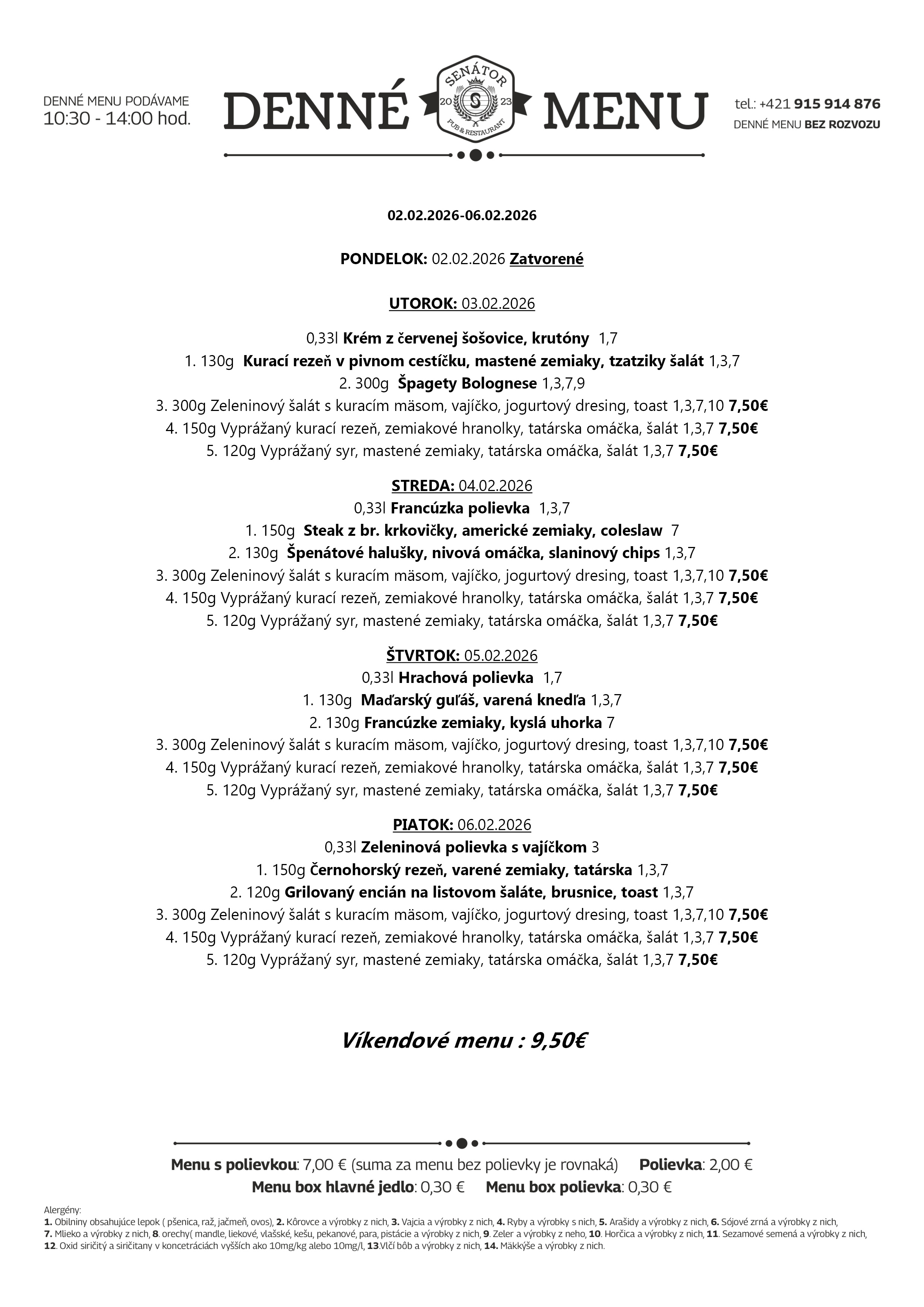 Nenechajte si ujsť naše chutné a zdravé denné menu. Pozrite si dnešnú ponuku na a príďte na obľúbený obed do Senátor Pub v Tvrdošíne. Tešíme sa na vašu návštevu. :)
