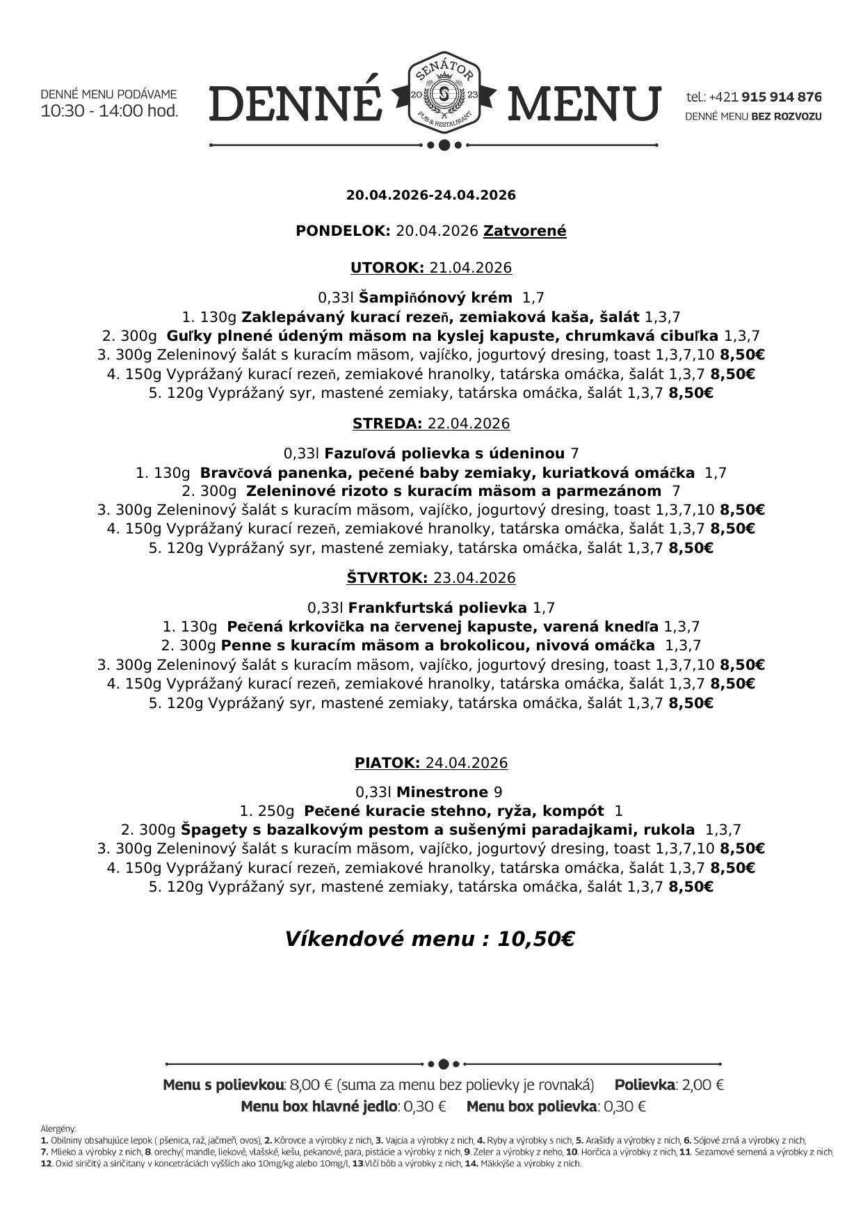 Nenechajte si ujsť naše chutné a zdravé denné menu. Pozrite si dnešnú ponuku na a príďte na obľúbený obed do Senátor Pub v Tvrdošíne. Tešíme sa na vašu návštevu. :)
