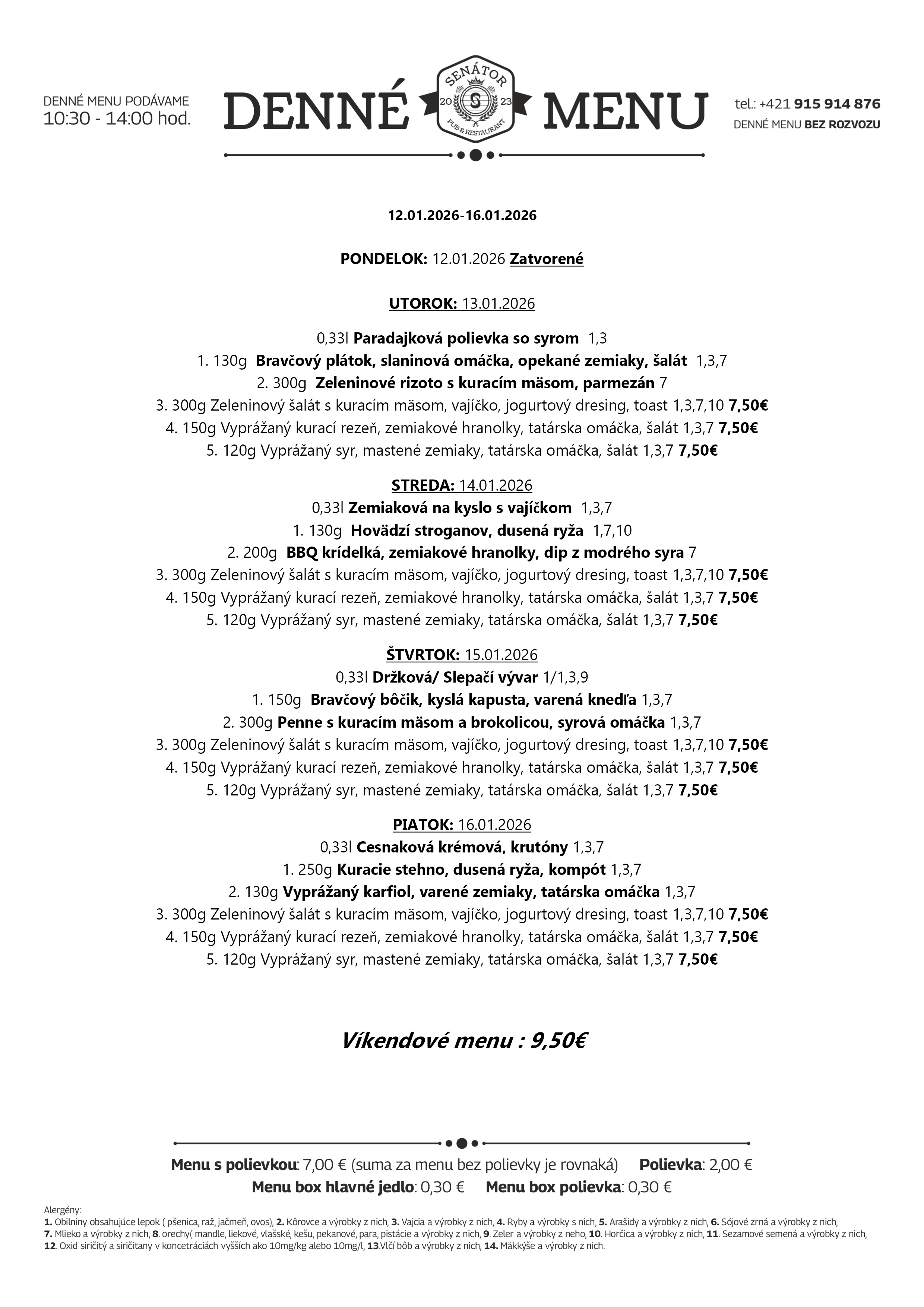 Nenechajte si ujsť naše chutné a zdravé denné menu. Pozrite si dnešnú ponuku na a príďte na obľúbený obed do Senátor Pub v Tvrdošíne. Tešíme sa na vašu návštevu. :)