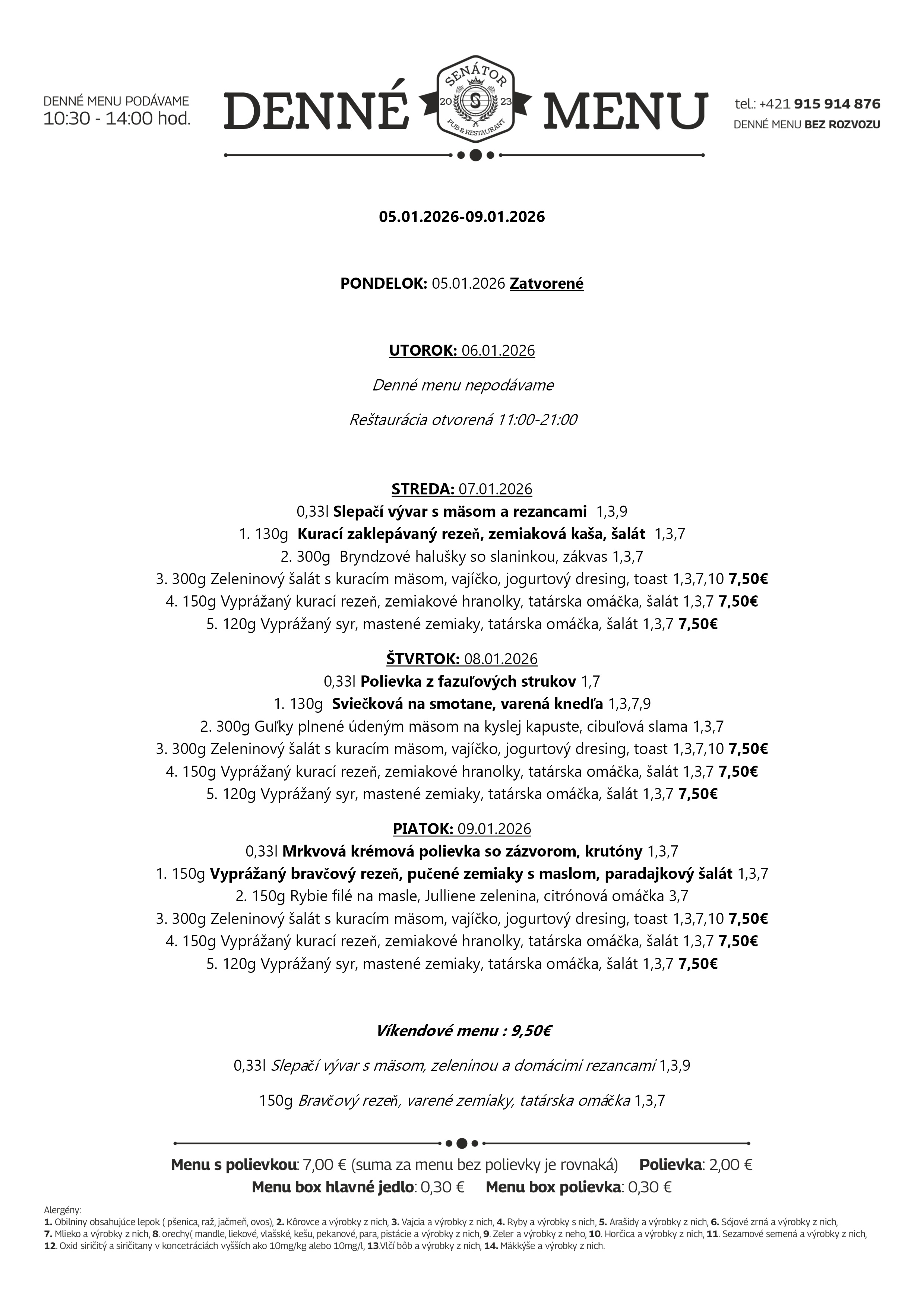 Nenechajte si ujsť naše chutné a zdravé denné menu. Pozrite si dnešnú ponuku na a príďte na obľúbený obed do Senátor Pub v Tvrdošíne. Tešíme sa na vašu návštevu. :)
