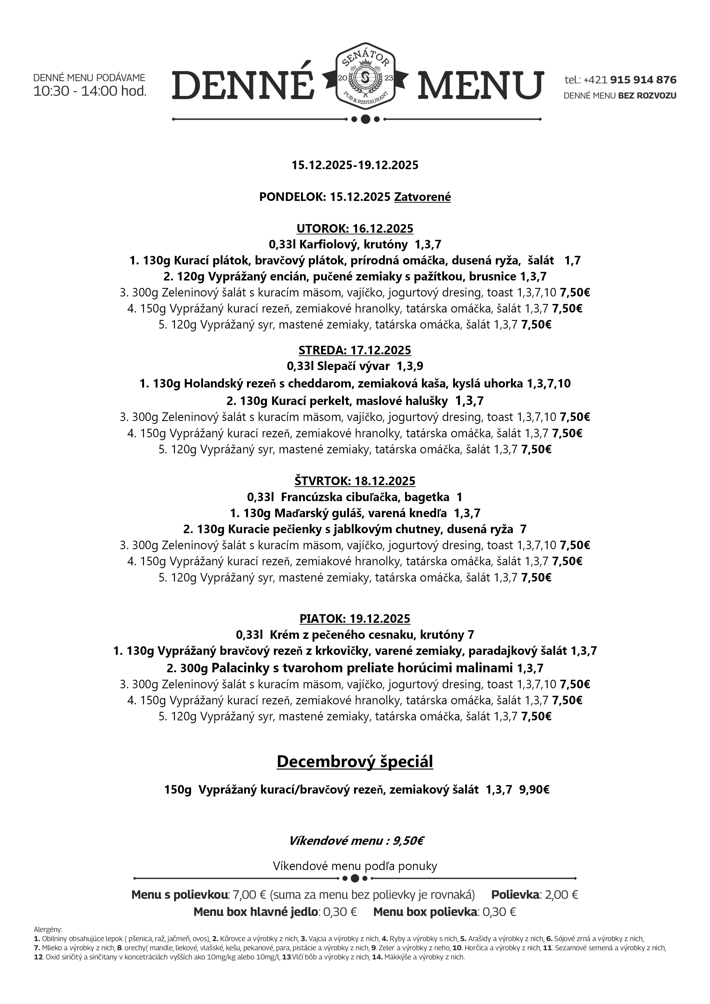 Nenechajte si ujsť naše chutné a zdravé denné menu. Pozrite si dnešnú ponuku na a príďte na obľúbený obed do Senátor Pub v Tvrdošíne. Tešíme sa na vašu návštevu. :)